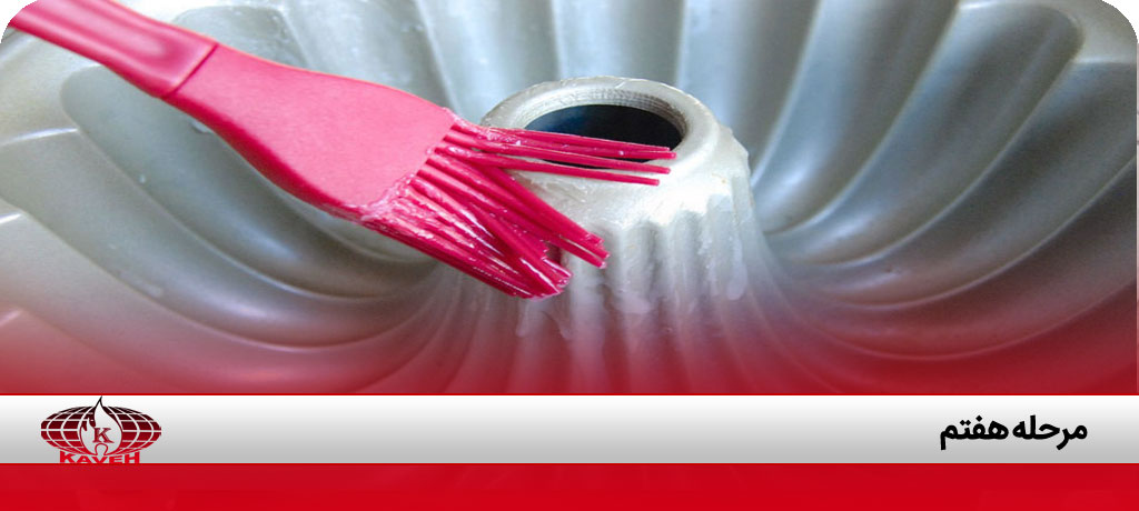 در این مرحله قالبی که برای پخت کیک را آماده کردهاید را با روغن مایع کمی چرب نمایید و یا میتوانید از کاغذ روغنی استفاده کنید. با این روش کیک به کف قالب نمیچسبد.